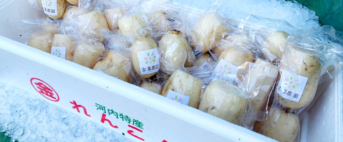 古澤農園では、茨城県産れんこんを年間通して栽培し、真空パックで鮮度を保ったまま全国へ直送しています。
