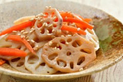 シャキシャキとした歯ざわりとほのかな甘みが特長で、きんぴらや天ぷら、れんこんはさみ揚げなど幅広い料理に最適。